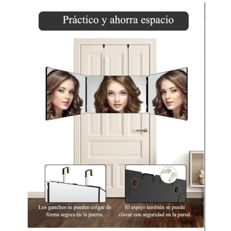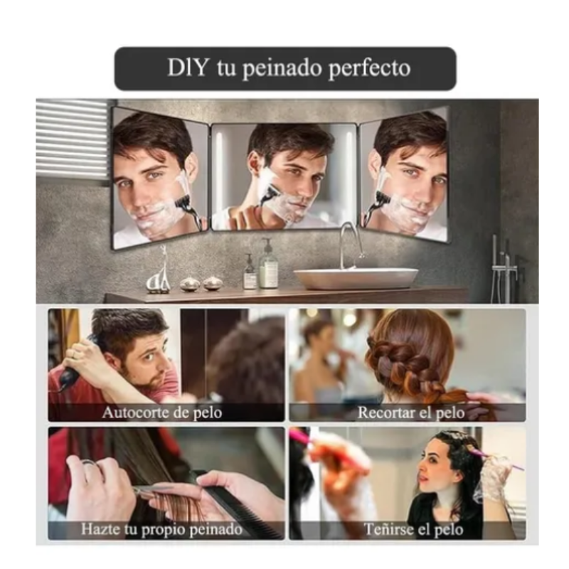 Espejo Tríptico 360 Grados Para Corte De Pelo Estilo