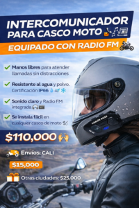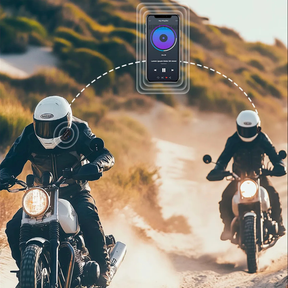 🔊 Sonido nítido incluso en movimiento a alta velocidad Conexión Bluetooth 5.0 rápida y estable. Batería de larga duración para rutas extensas. Instalación fácil sin herramientas. Compatible con la mayoría de cascos.