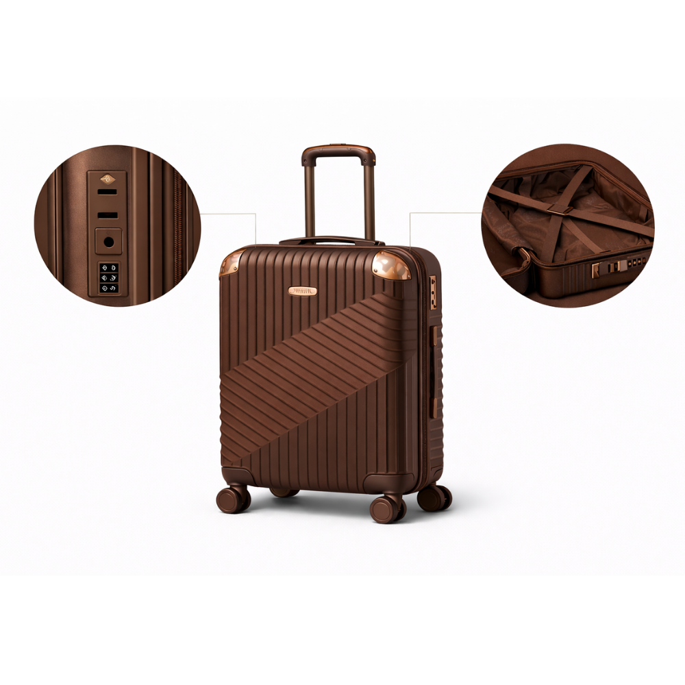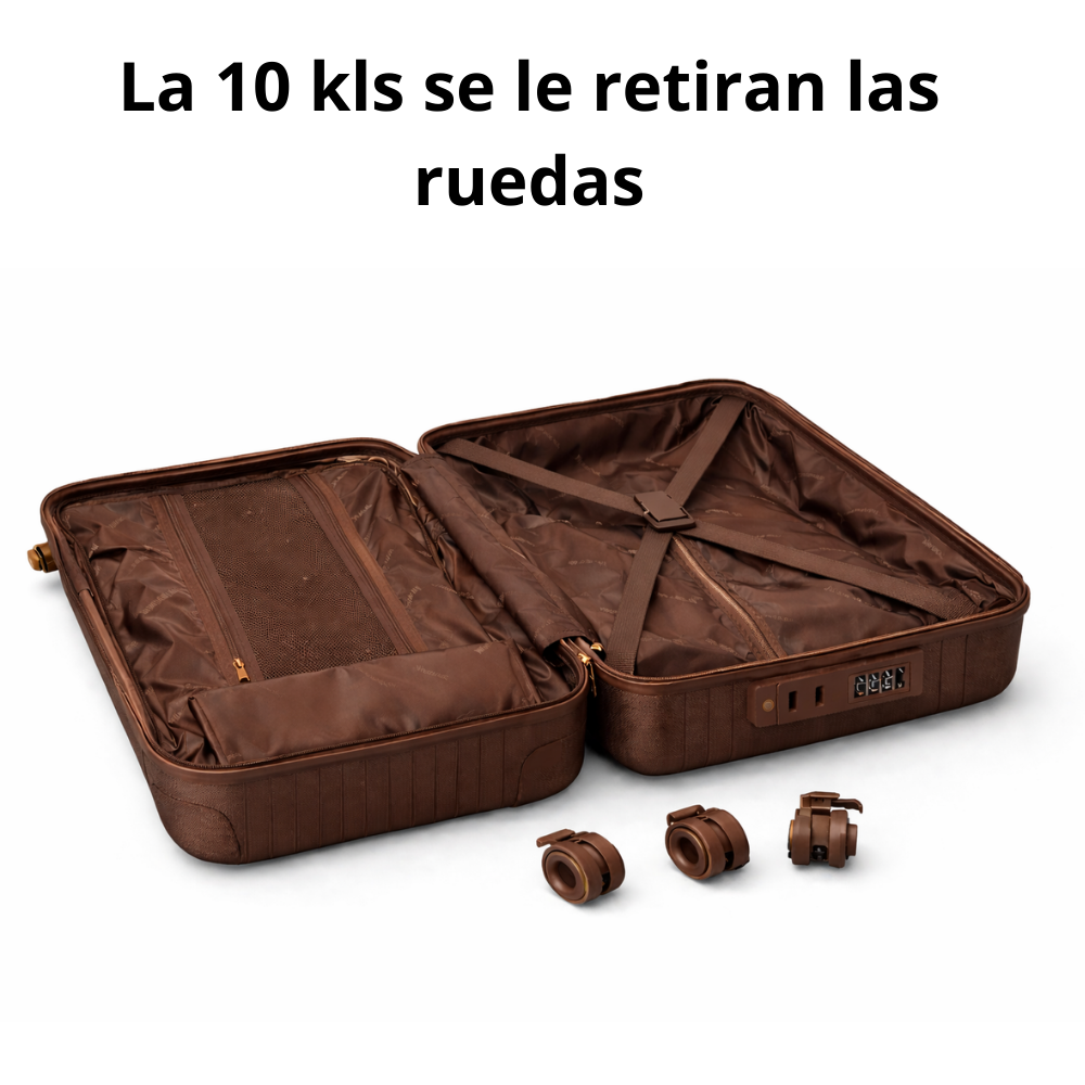 Cada maleta incorpora candado de clave de 3 números, ofreciendo mayor seguridad durante el transporte. Además, cuentan con ruedas dobles con giro 360°, lo que facilita el desplazamiento en aeropuertos, terminales o superficies lisas.