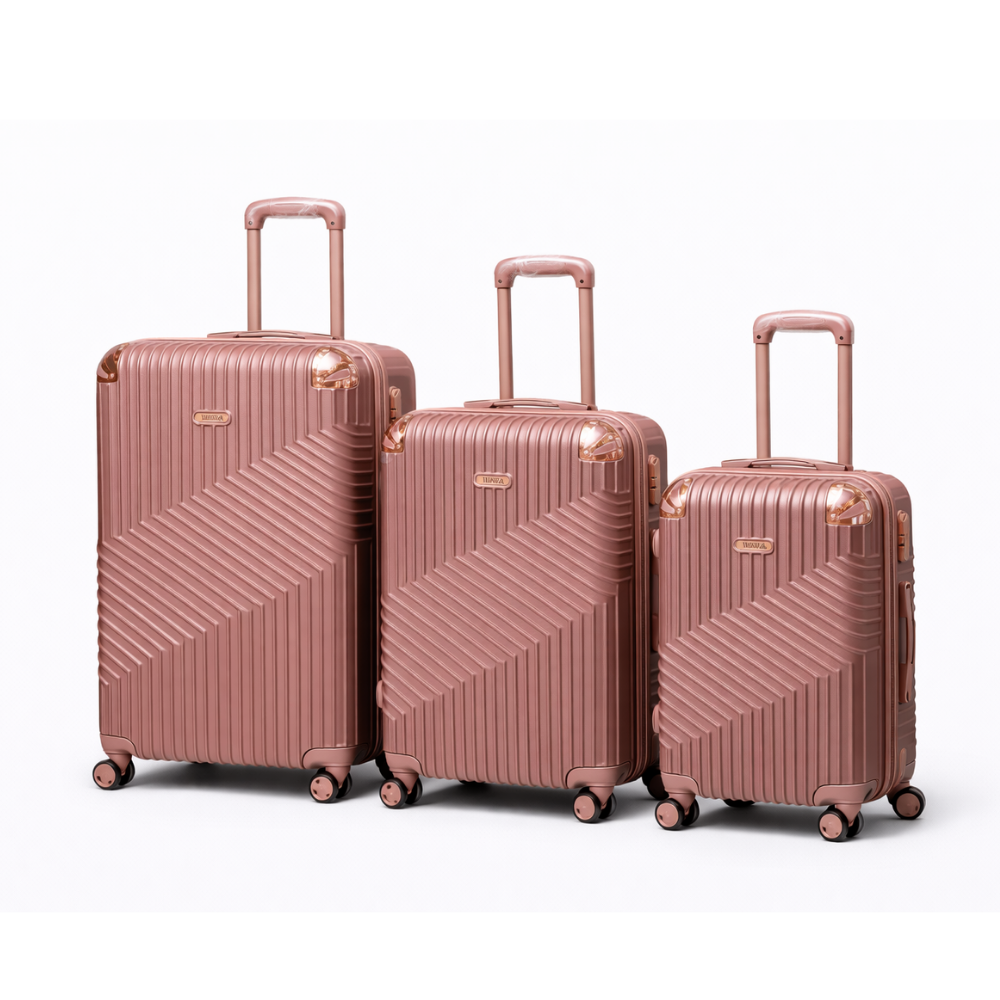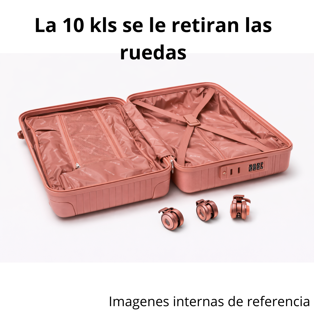 Cada maleta incorpora candado de clave de 3 números, ofreciendo mayor seguridad durante el transporte. Además, cuentan con ruedas dobles con giro 360°, lo que facilita el desplazamiento en aeropuertos, terminales o superficies lisas.