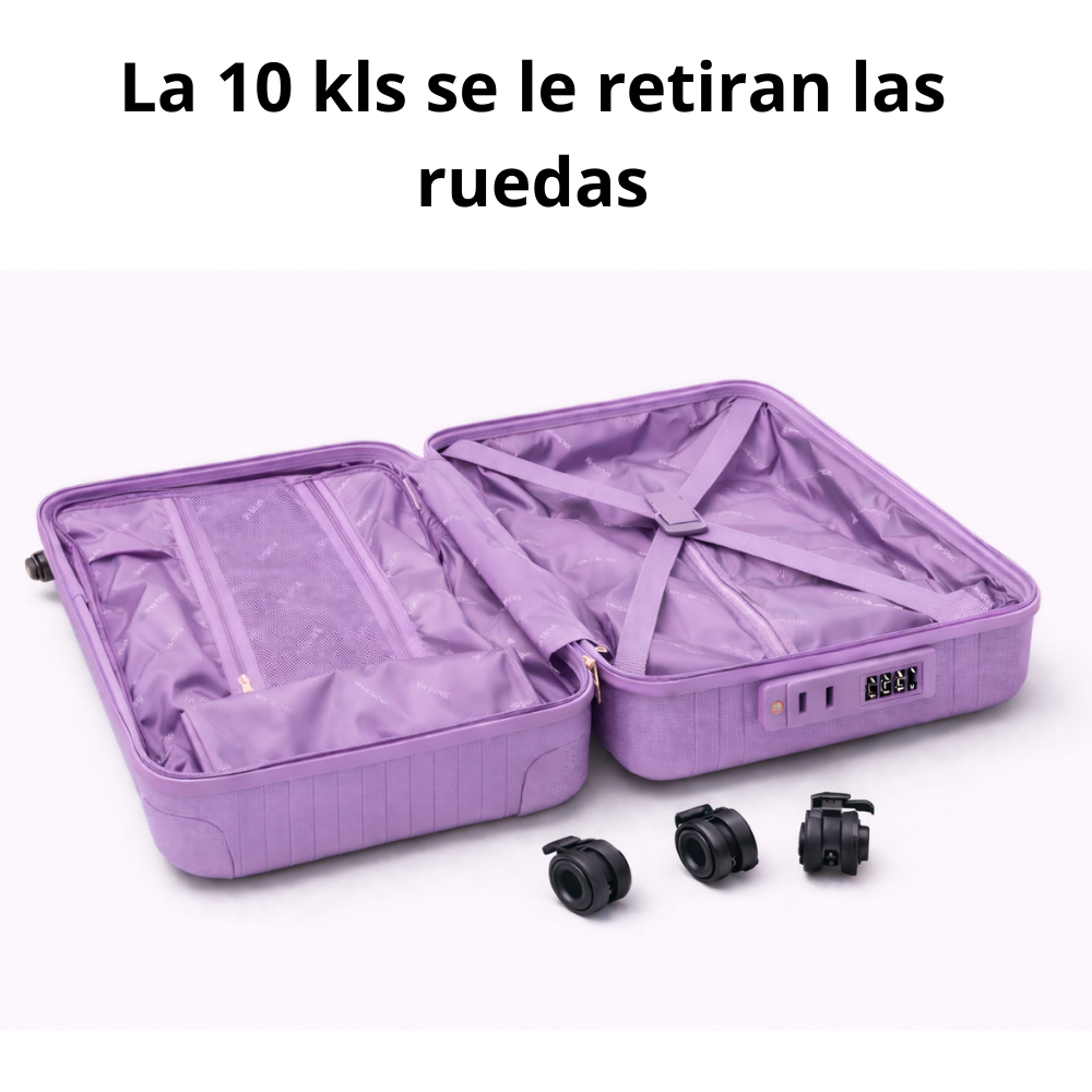Cada maleta incorpora candado de clave de 3 números, ofreciendo mayor seguridad durante el transporte. Además, cuentan con ruedas dobles con giro 360°, lo que facilita el desplazamiento en aeropuertos, terminales o superficies lisas.