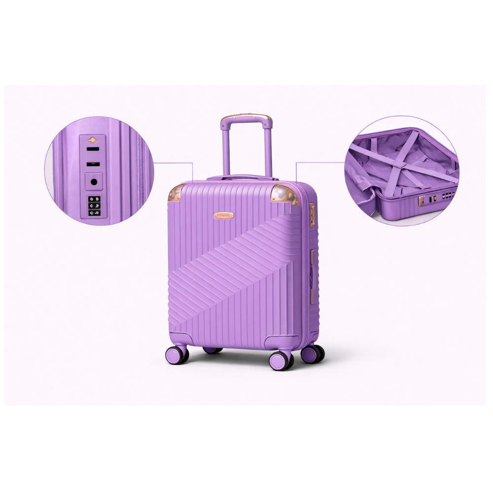 Set 3 Maletas Rígidas De Viaje Con Ruedas 360° Candado Seguridad Color Purpura
