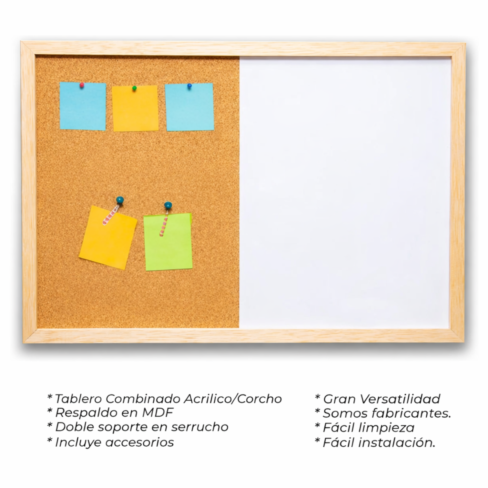 Optimiza tu espacio y mantén todo bajo control con nuestro Tablero Combinado Acrílico y Corcho, diseñado para quienes buscan funcionalidad, durabilidad y estética profesional en un solo producto.
